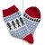 Für die Socken benötigst du ca. 25 g Weiß (Fb 01), 35 g Dunkelrot (Fb 262) und 25 g Farn (Fb 198).