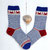 Für die Socken benötigst du ca. 40 g Tintenblau (Fb 71), 45 g Weiß (Fb 01) und ca. 15 g Rot (Fb 06)